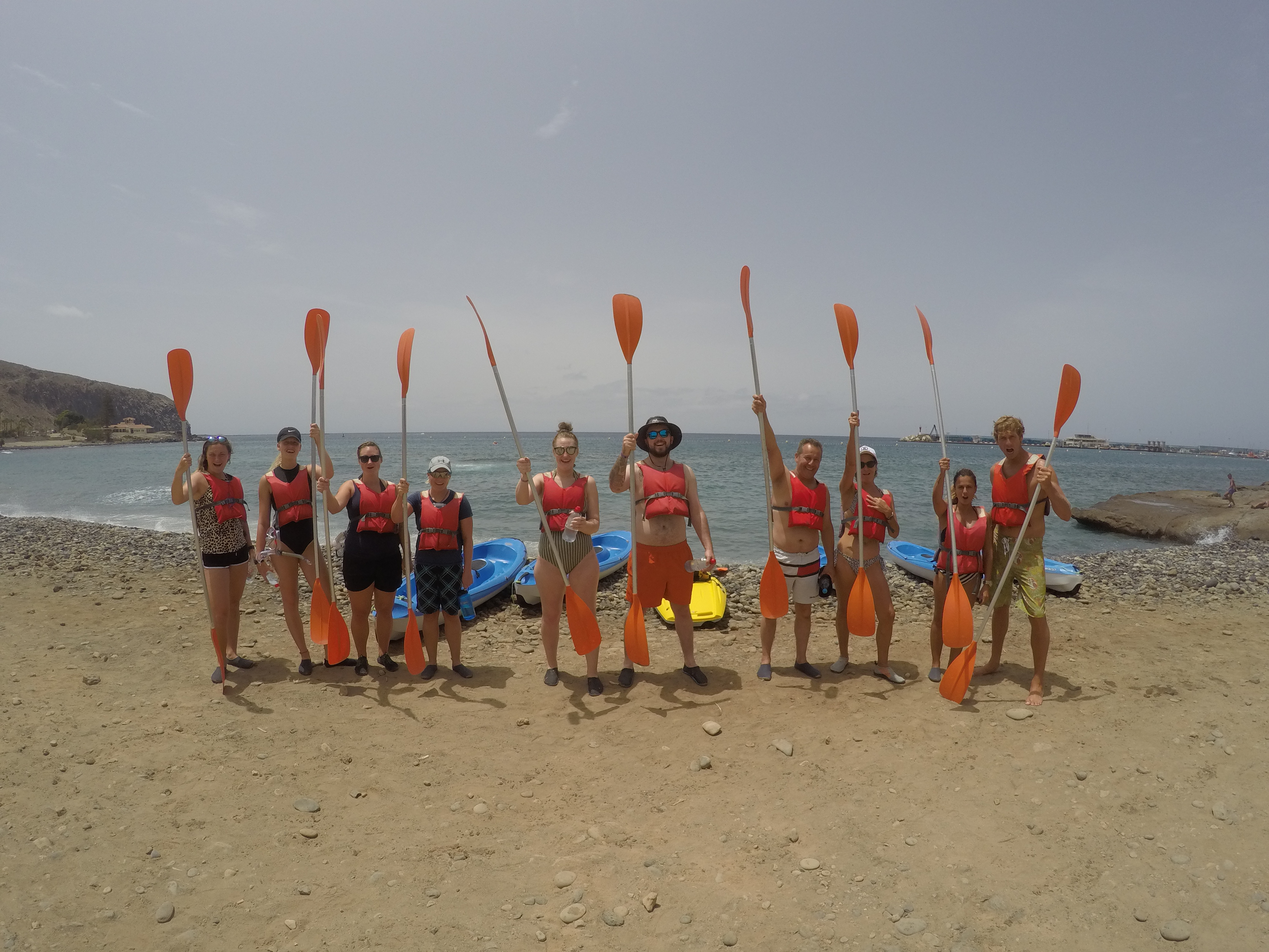 El piragüismo es una buenísima actividad deportiva para disfrutar de la naturaleza y practicar actividades acuáticas. Comenzamos desde Los Cristianos y vamos a explorar la zona donde se ven a menudo los delfines. Somos afortunados de tener esas amistosas y asombrosas criaturas habitando cerca de la costa de Los Cristianos. Tanto los niños como los mayores están encantados de verlos saltando fuera del agua haciendo sus pequeños espectáculos. El tour en canoa dura 2 horas y no incluye el snorkeling. Esta excursión de kayak en Tenerife es una buena manera de pasar un día de actividades con vuestros amigos o familia.