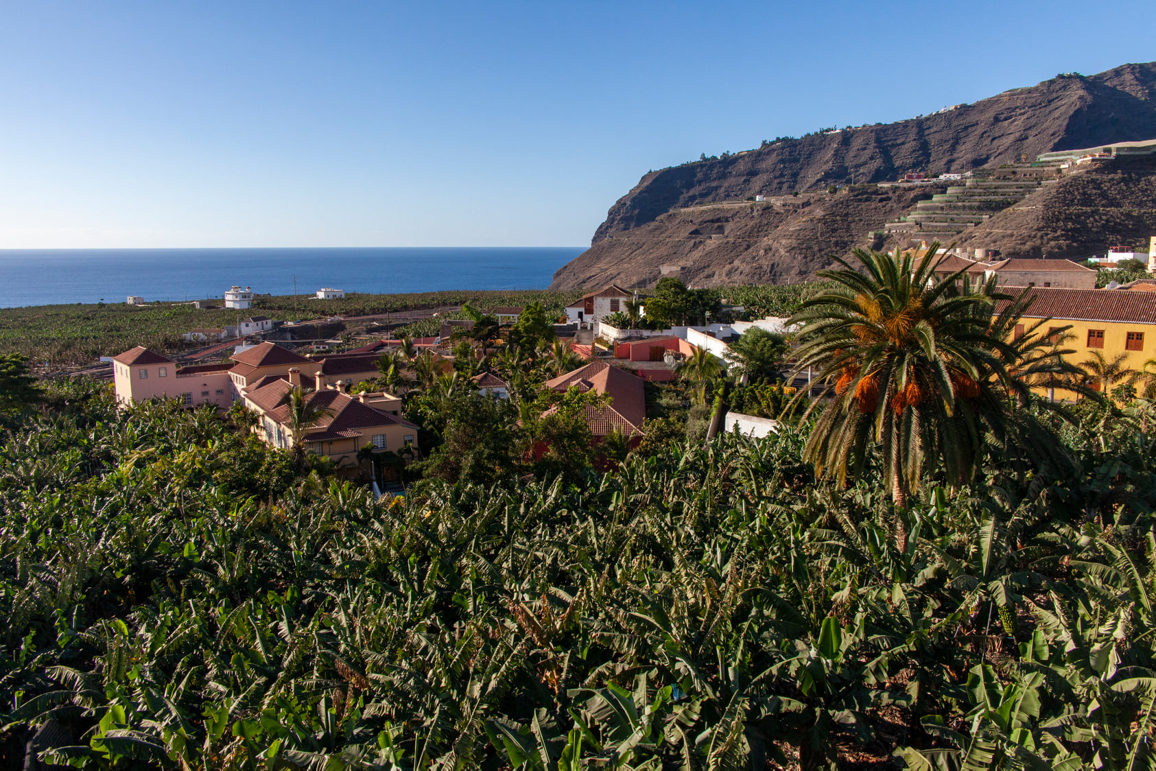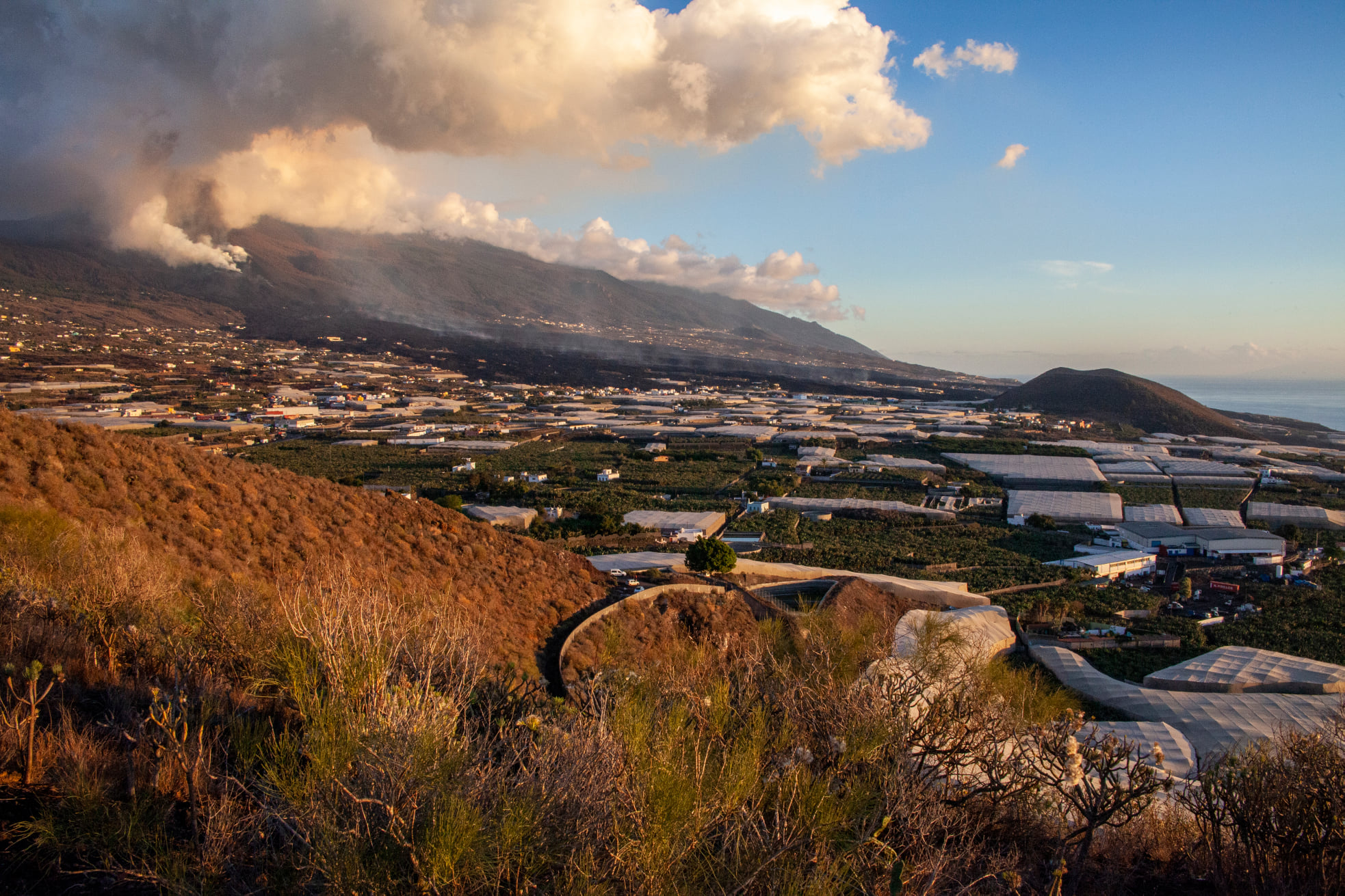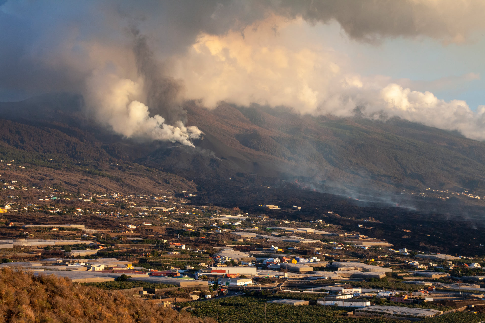 La siguiente parada será en la zona de exclusión del barrio de Tacande donde tendrás una primera vista del volcán. Seguidamente irás a Tazacorte, mientras observas las coladas lávicas mas jóvenes de España.